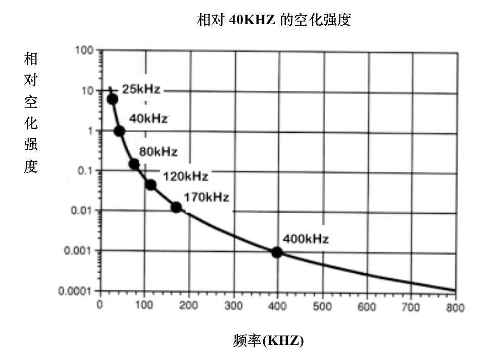 然而只有在某区域的液体压力低于该气泡内气体压力时才会在该区域产生空化现象,故由换能器产生的超声波振幅足够大时才能满足这一条件。产生空化所需的最小功率被称做空化临界点。不同的液体存在不同的空化临界点,故超声波能量必须超过该临界点才能达到清洗效果。也就是说,只有能量超过临界点才能产生空化泡,以便进行超声清洗。